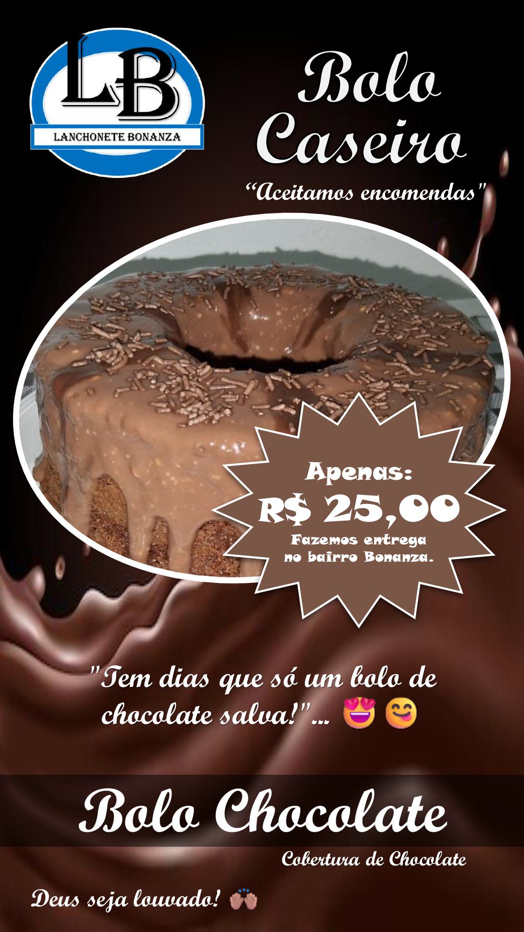 Bolo de Chocolate/Sem recheio/Cobertura simples -R$ 25,00
