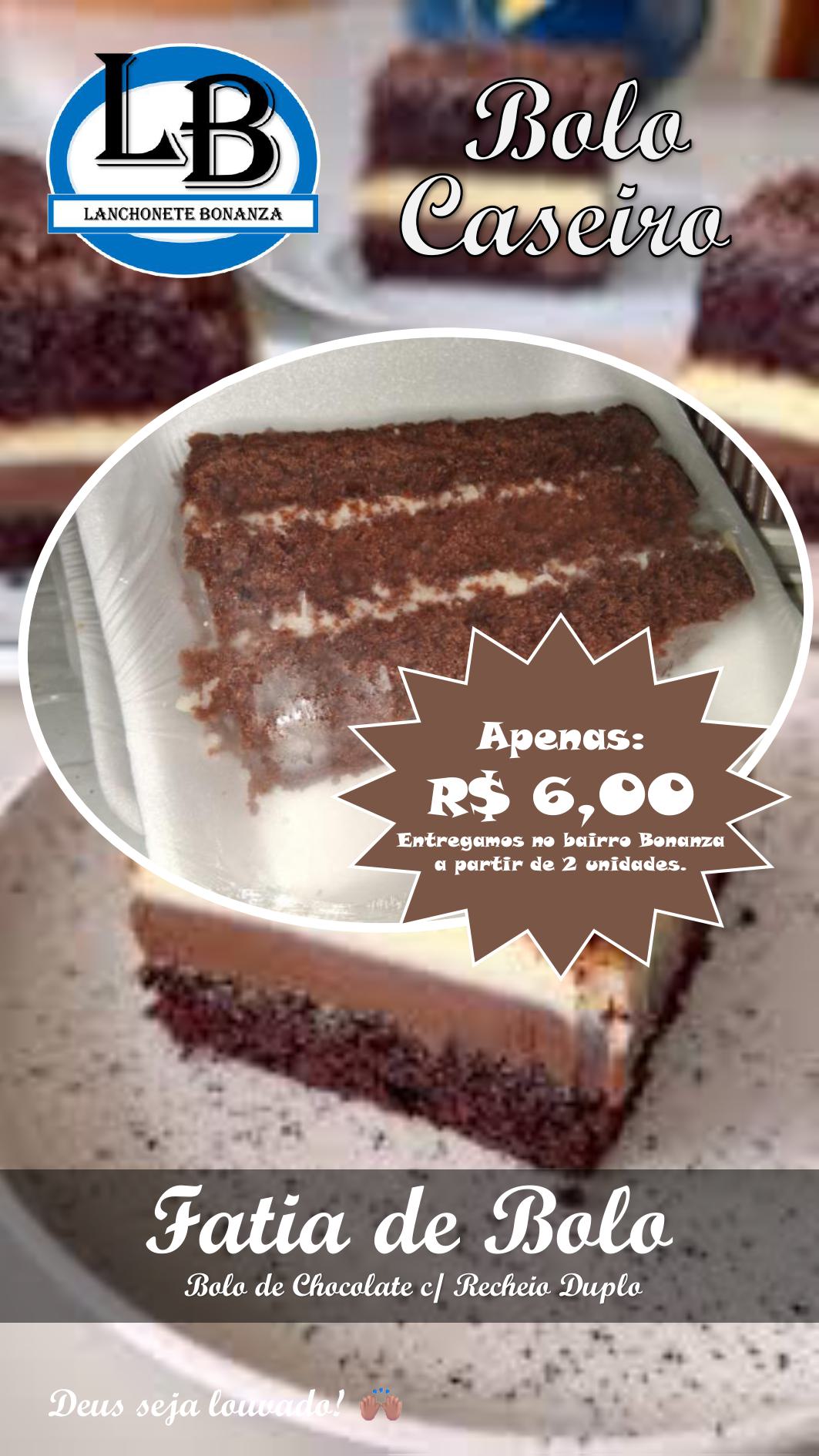Bolo de Chocolate/Recheio duplo/Cobertura simples -R$ 55,00